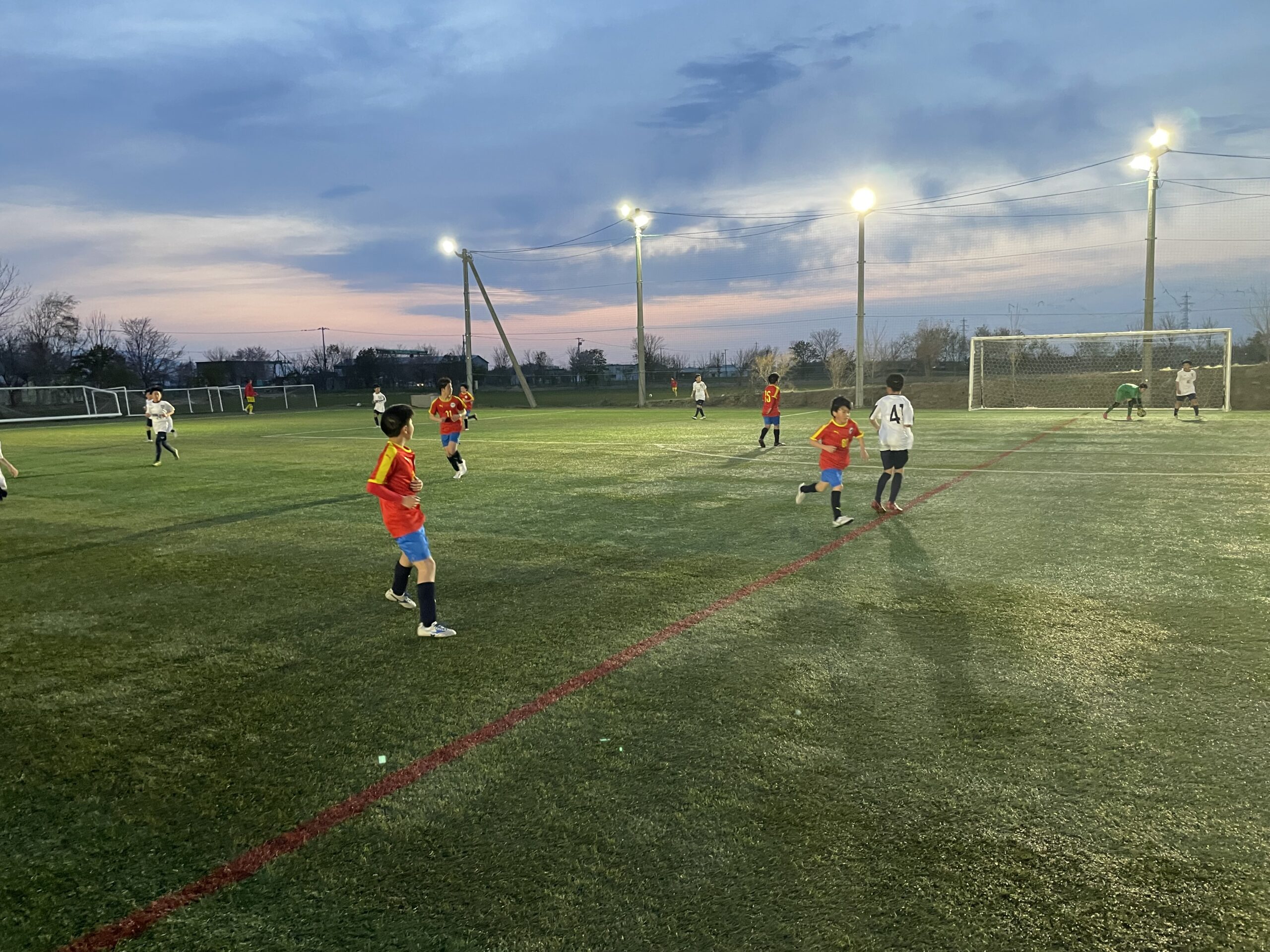 4月26日(日) U13 teamは、RED WHITEに分けて石狩FCと練習試合を行いました。